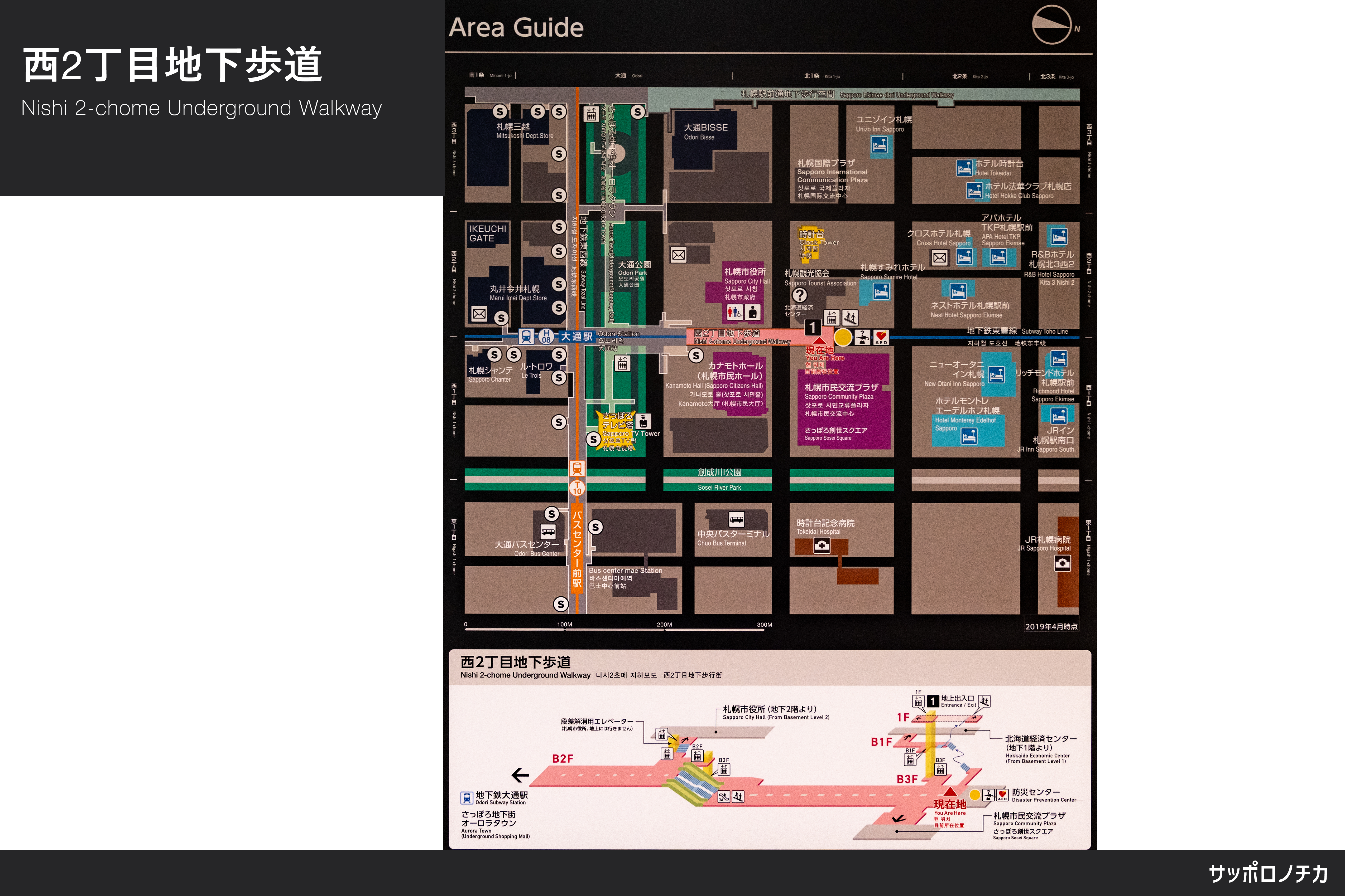西2丁目地下歩道は、札幌市民交流プラザ・さっぽろ創世スクエアと、大通駅(30番出口)を結ぶ地下通路。2018年開通。